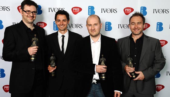 Ричард Беддоу (второй справа) с наградой за лучший игровой саундтрек 2011 года.