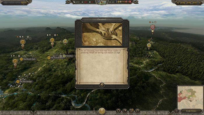 Будучи мигрирующим племенем, вы будете главным образом, как говорит само название, мигрировать. Когда вы увидите, что плодородность земли начнет уменьшаться (вы можете увидеть это в стратегическом режиме просмотра карты, включив соответствующий фильтр) соберите свои пожитки, помашите рукой оседлому образу жизни и уходите из замерзающих северных земель. Хотя оседлые южные народы не будут в восторге от вашего вторжения в их земли в поисках более гостеприимных земель, угождение им не ваша забота, тем более не ваша цель. Мигрирующие фракции ни с кем не могут заключать договоры о проходе, они должны попытать счастье и идти вперед, не останавливаясь.