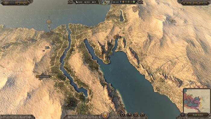В отличие от нее, Восточная Римская и Сасанидская империи делят между собой "плодородный полумесяц" в долине Нила и в Месопотамии, соответственно. Эти сверхплодородные земли являются основой процветания этих наций и, особенно это касается Сасанидов, защищают их от немедленного наступления голода и отчаяния.
