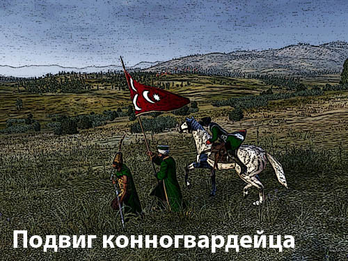 Тяжкие потери уполовинили силы россиян, но и турки бились на последнем издыхании. Однако силы их были все еще велики, и хотя славная артиллерия сумела изорвать в клочья грозную верблюжью кавалерию, пешие башибузуки с кривыми саблями все-таки заняли окраины Анкары. Исход последнего боя должен был решаться уже на городских улицах, а решился… в чистом поле, где совершил свой геройский подвиг молодой конногвардеец. В момент наивысшего напряжения боя, когда Шереметьев уже готов был командовать ретираду усталым полкам, фигурка всадника на белом коне вдруг появилась на том холме, где трепетал османский флаг.
