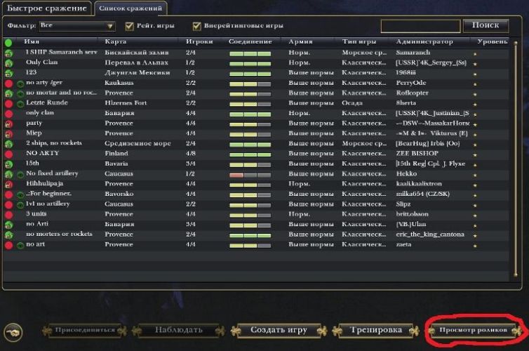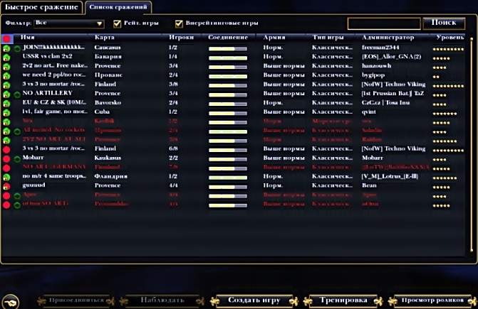 Если игра создавалась с наблюдателями (с символом "глазик"), то вы к ней сможете присоединиться и понаблюдать за игрой нажав кнопочку "Наблюдатель". В этом случае вам не надо будет набирать войска (да этого и не дадут вам сделать), зато вы можете спокойно гулять по полю битвы, наблюдать за баталиями и флудить в оперативный чат, отвлекая внимание всех бойцов или помогая им, следя за войсками противника.