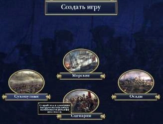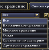 Нажимаем ее и выбираем тип битвы: сухопутное сражение, сухопутная осада, сценарий или морская битва.