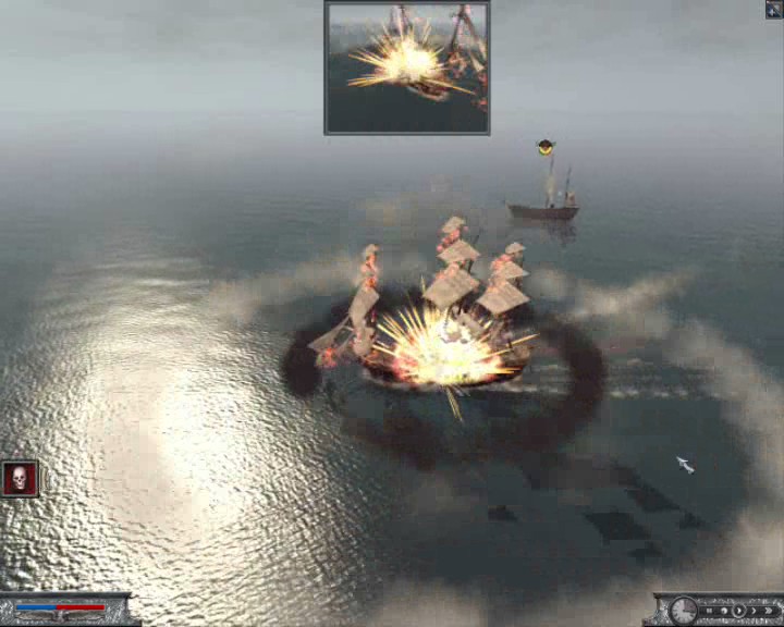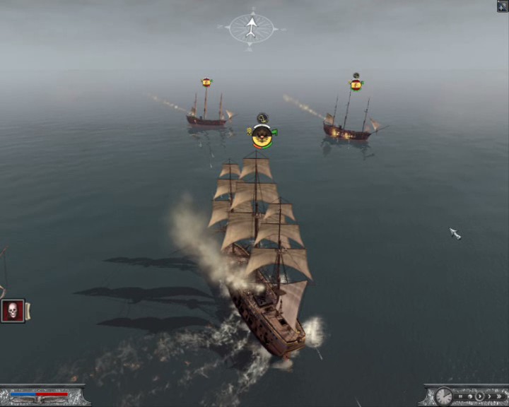 И напоследок один из самых важных вопросов, который интересует "морских волков". А именно - о дальности полета ядер и книппелей. Здесь вас ожидает хорошая новость: принцип напоминает игру Empire TW до выхода злосчастного патча 1.4 (фактически убившего морские сражения в он-лайне). Дальность полета ядер почти в два раза больше, чем книппелей. Субъективно кажется, что книппеля наносят меньше повреждений, даже если удачно попасть по врагу с носа или кормы.